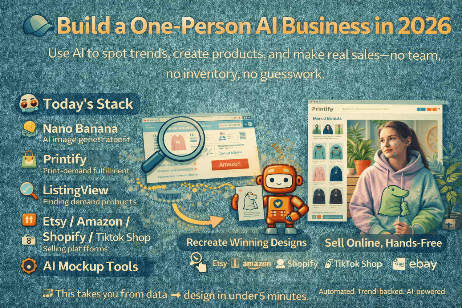 This is what a one-person business in 2026 looks like: automated, trend-backed, and AI-powered.
